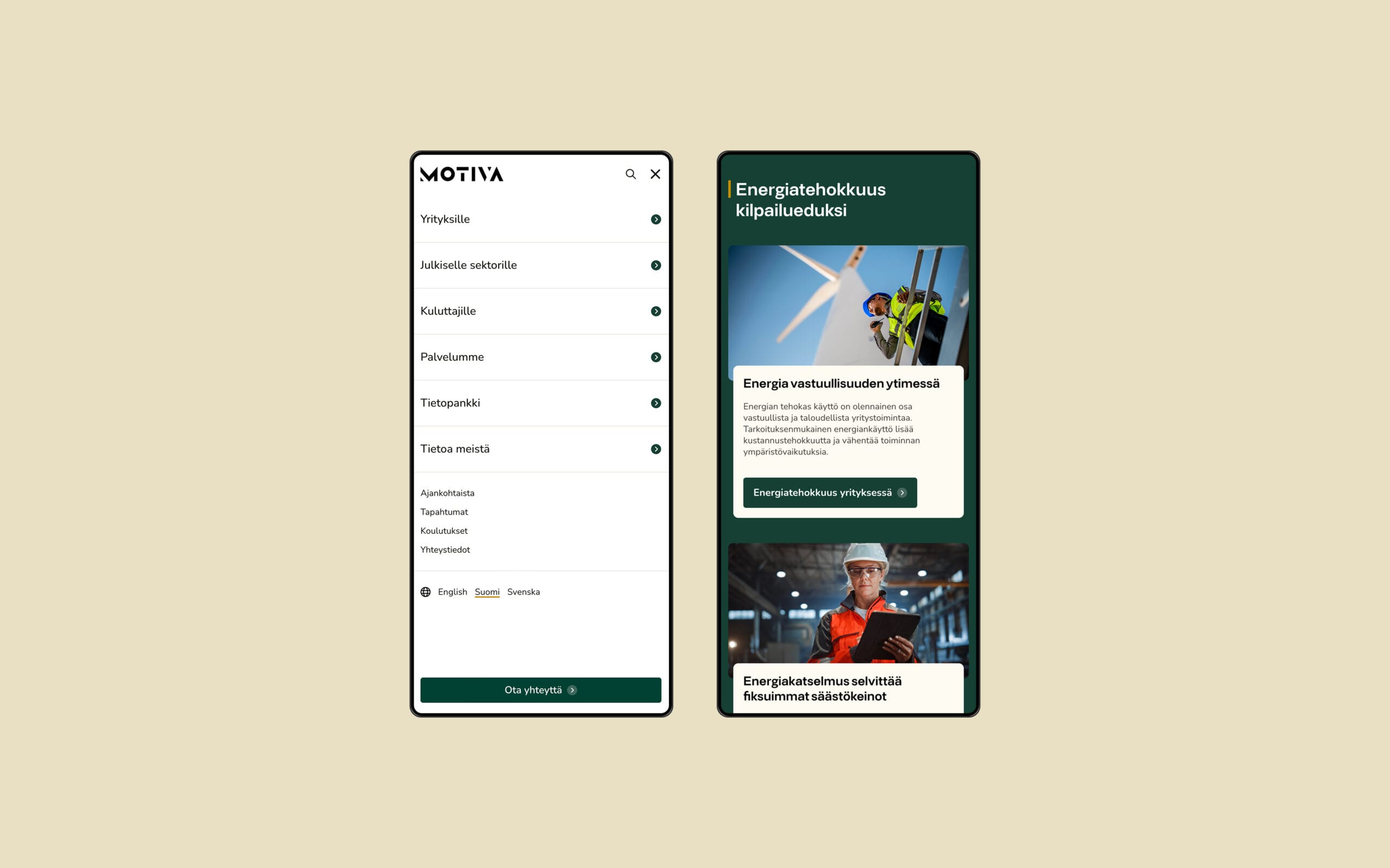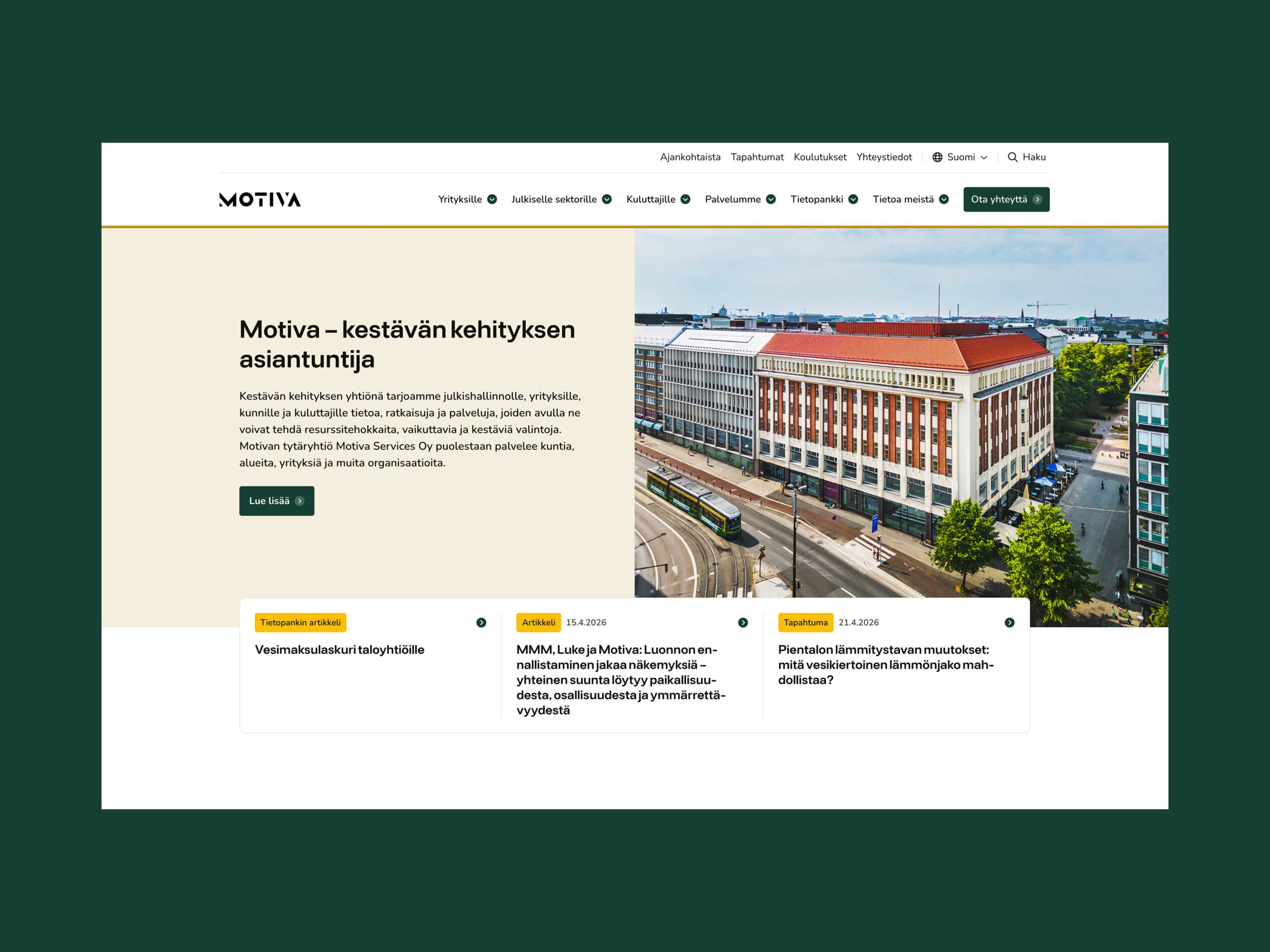 Motiva on kestävän kehityksen yhtiö, joka tarjoaa julkishallinnolle, yrityksille, kunnille ja kuluttajille tietoa, ratkaisuja ja palveluja, joiden avulla ne voivat tehdä resurssitehokkaita, vaikuttavia ja kestäviä valintoja. Me vastasimme uuden motiva.fi:n suunnittelusta ja toteutuksesta.