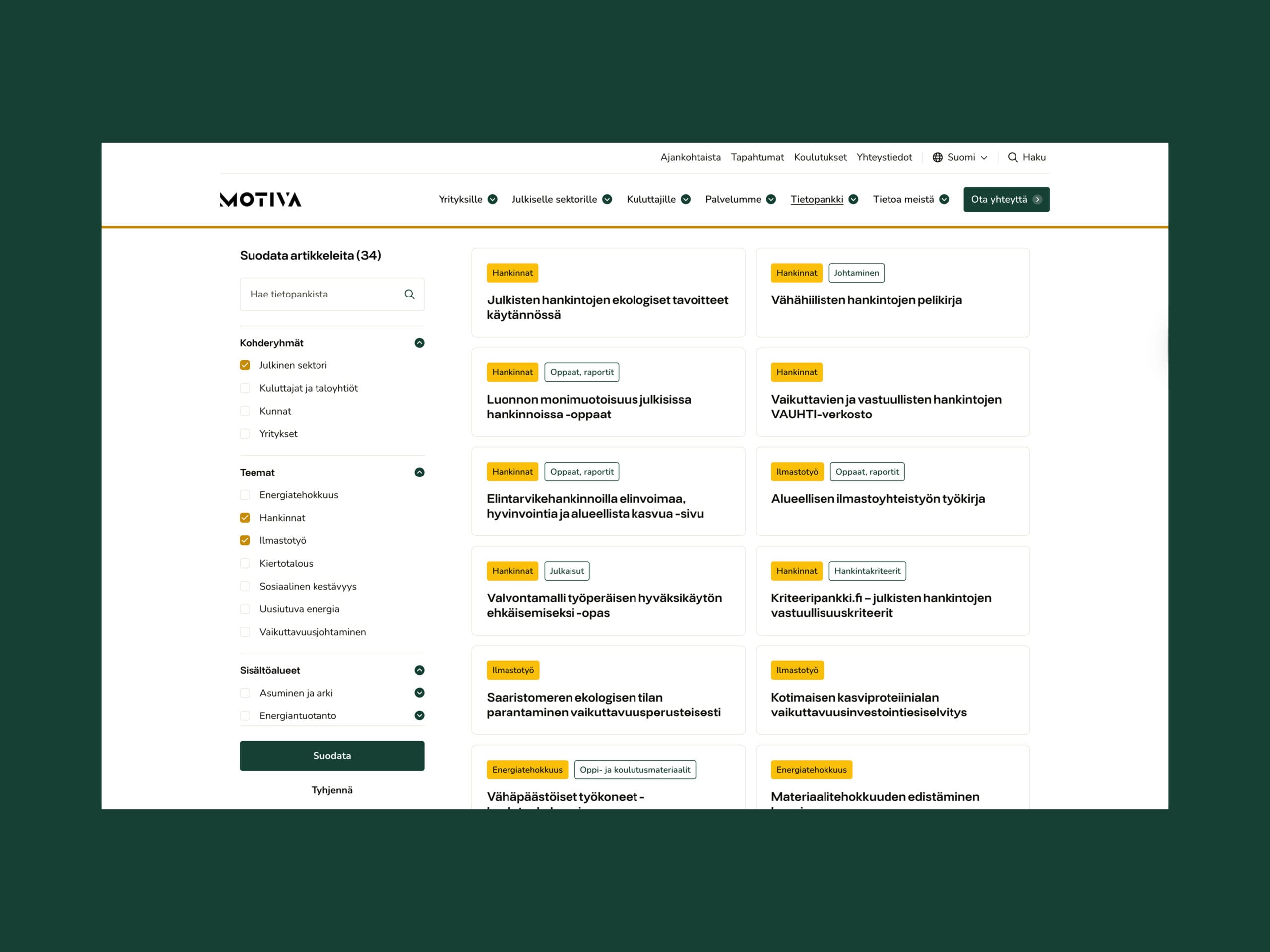 ”Harva asiakas uskaltaa haastaa omaa sisällöllistä ajatteluansa noin laajasti, kuin Motiva uskalsi. Kaikki kunnia siitä heille. Tämän työn ansiosta uusi verkkopalvelu on hurjasti aikaisempaa edellä.”